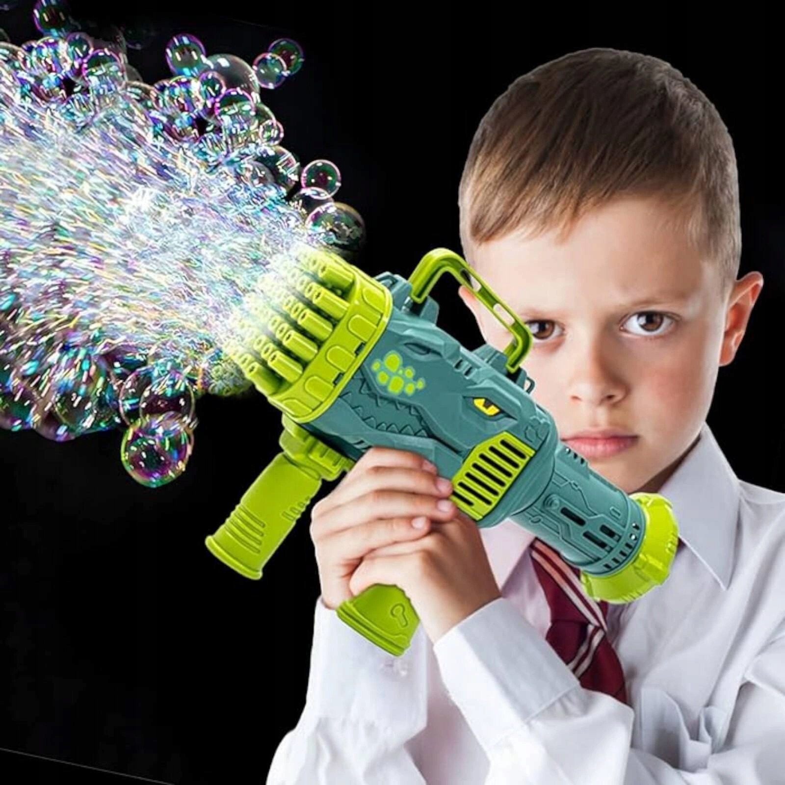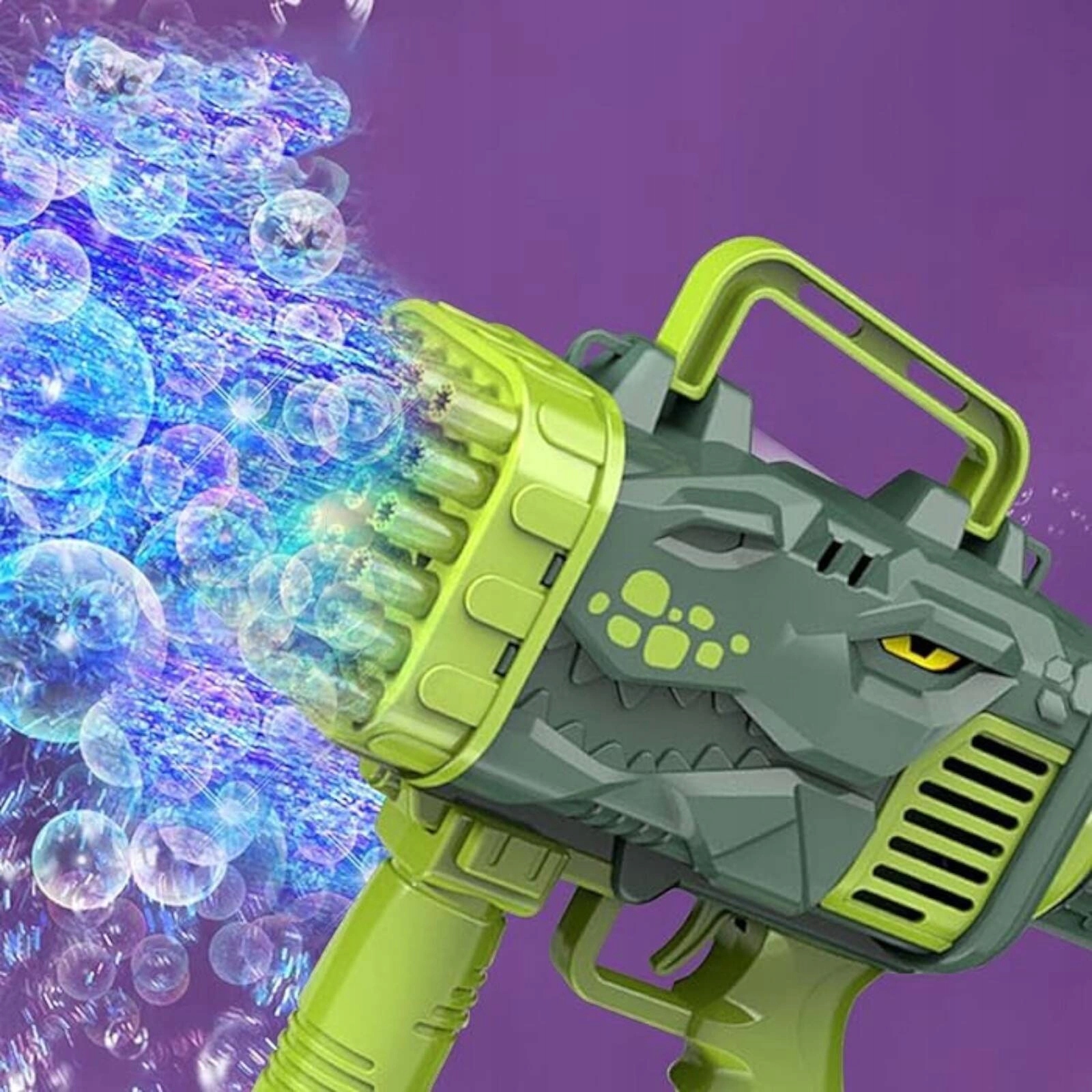Путешествие во времени в доисторический мир веселья с нашей пузырьковой динозавром Bazooka! Этот мыльный пузырьковый пистолет, оснащенный 32 отверстиями, создан для каждого маленького исследователя. Это фантастическое приключение, где встречаются доисторические существа и современные пузырьковые технологии, создавая незабываемые моменты веселья.