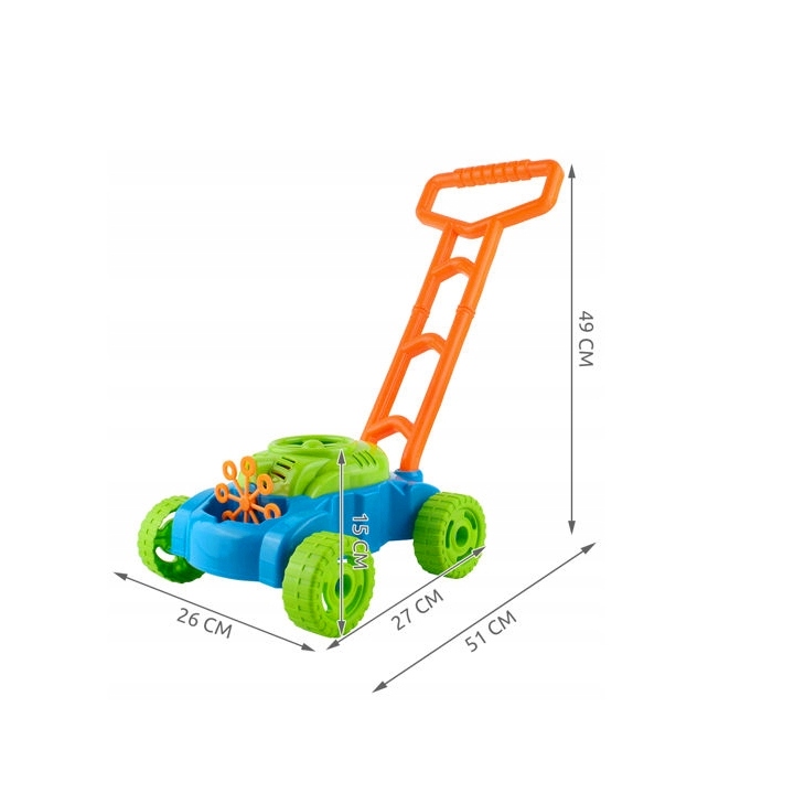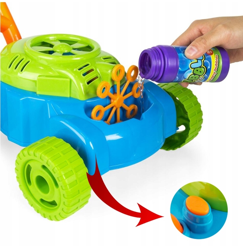 Успешное веселье в свежем воздухе может быть еще более интересным и привлекательным. Игрушечная косилка не только научит ребенка, как ухаживать за газоном, но и подбадривать самую молодость и вызовет искреннюю улыбку благодаря функции выпуска бесчисленных красочных пузырьков мыла.