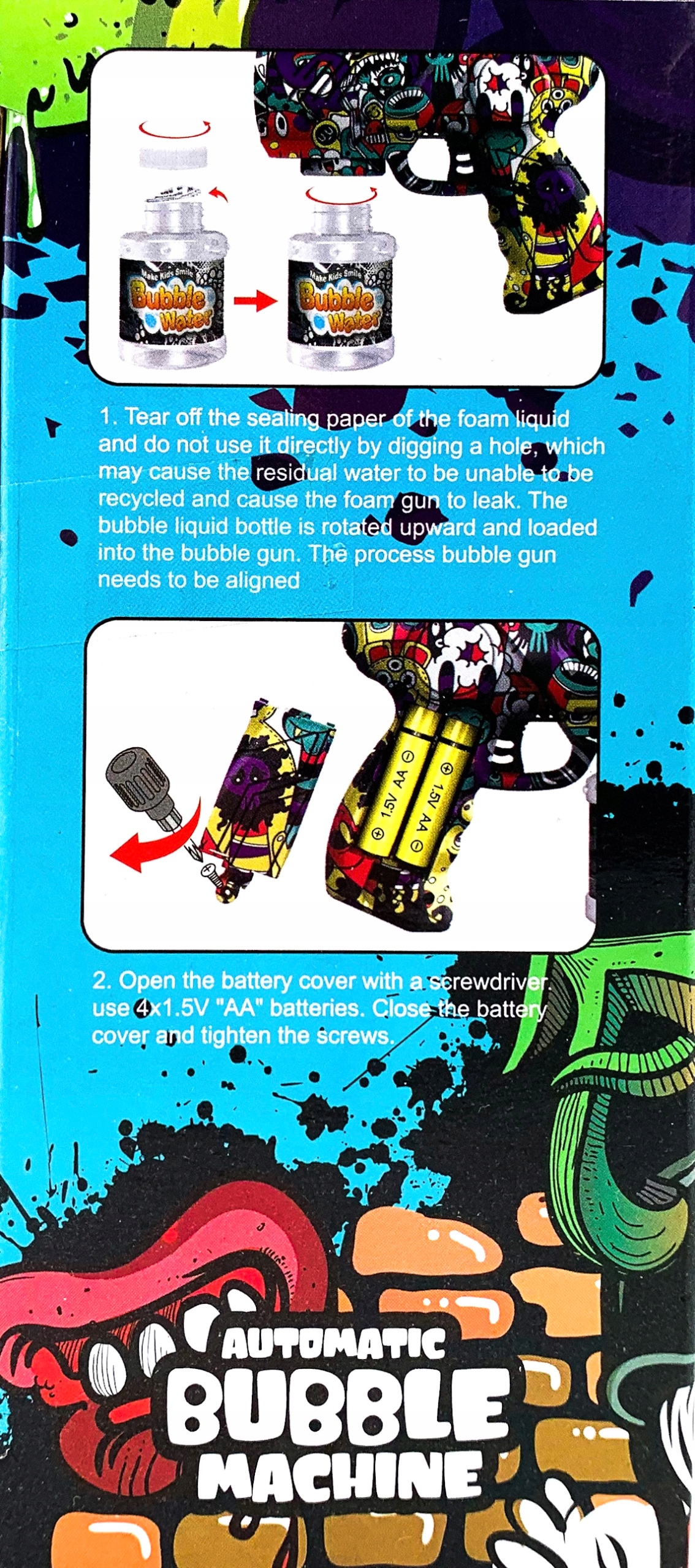 Оплачивая «Мыльные пузыри, пистолет для выдувания мыльных пузырей, разноцветный с узорами.», вы можете быть уверены, что данное изделие из каталога «Мыльные пузыри» будет доставлено из Польши и проверено на целостность. В цене товара, указанной на сайте, учтена доставка из Польши. Внимание!!! Товары для Евросоюза, согласно законодательству стран Евросоюза, могут отличаться упаковкой или наполнением.
