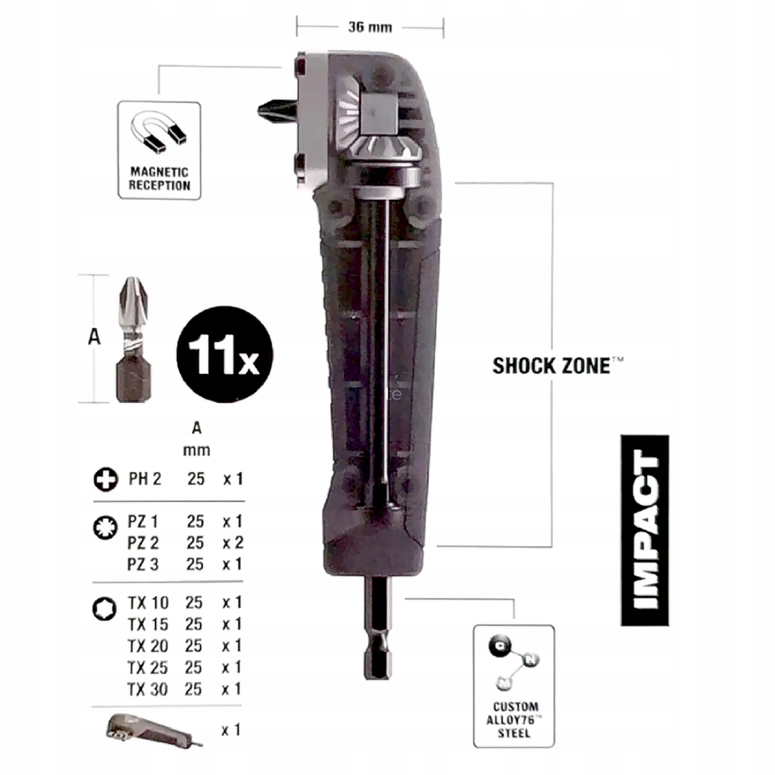 Насадка под прямым углом (90°) — идеальное решение для любого применения в труднодоступных местах. Внутренняя зона SHOCKZONE™ поглощает удары и обеспечивает максимальную долговечность.