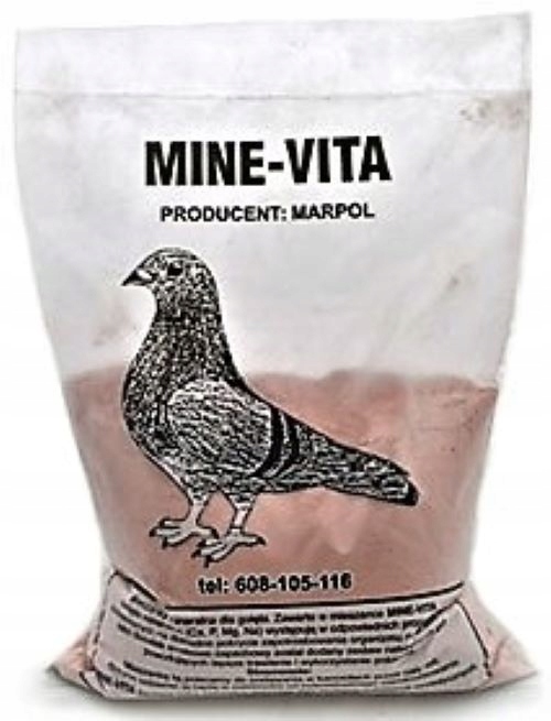 Минеральная смесь для голубей. Минералы, содержащиеся в смеси MINE-VITA (Ca, P, Mg, Na), находятся в соответствующих пропорциях, чтобы точно покрыть потребность организма в этих ингредиентах. В качестве вкусо-ароматической добавки добавлен набор натуральных трав для улучшения переваривания и использования пищи.