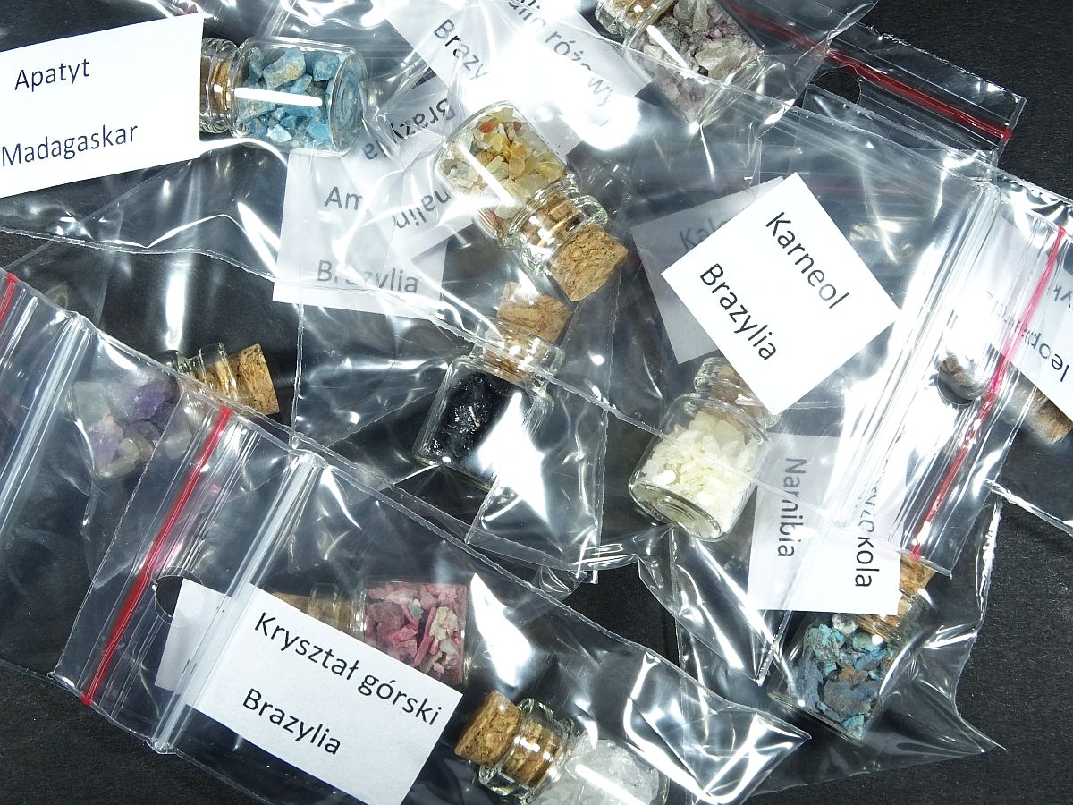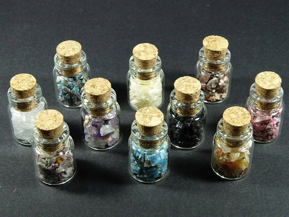 Установите 10 шт. Бутылки с сырыми минералами.