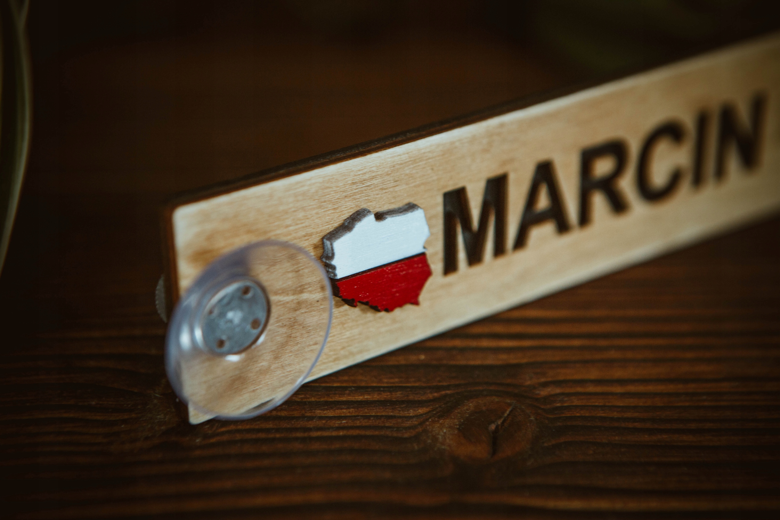 Название и карта Польши вырезаны лазером, что создает 3D-эффект.