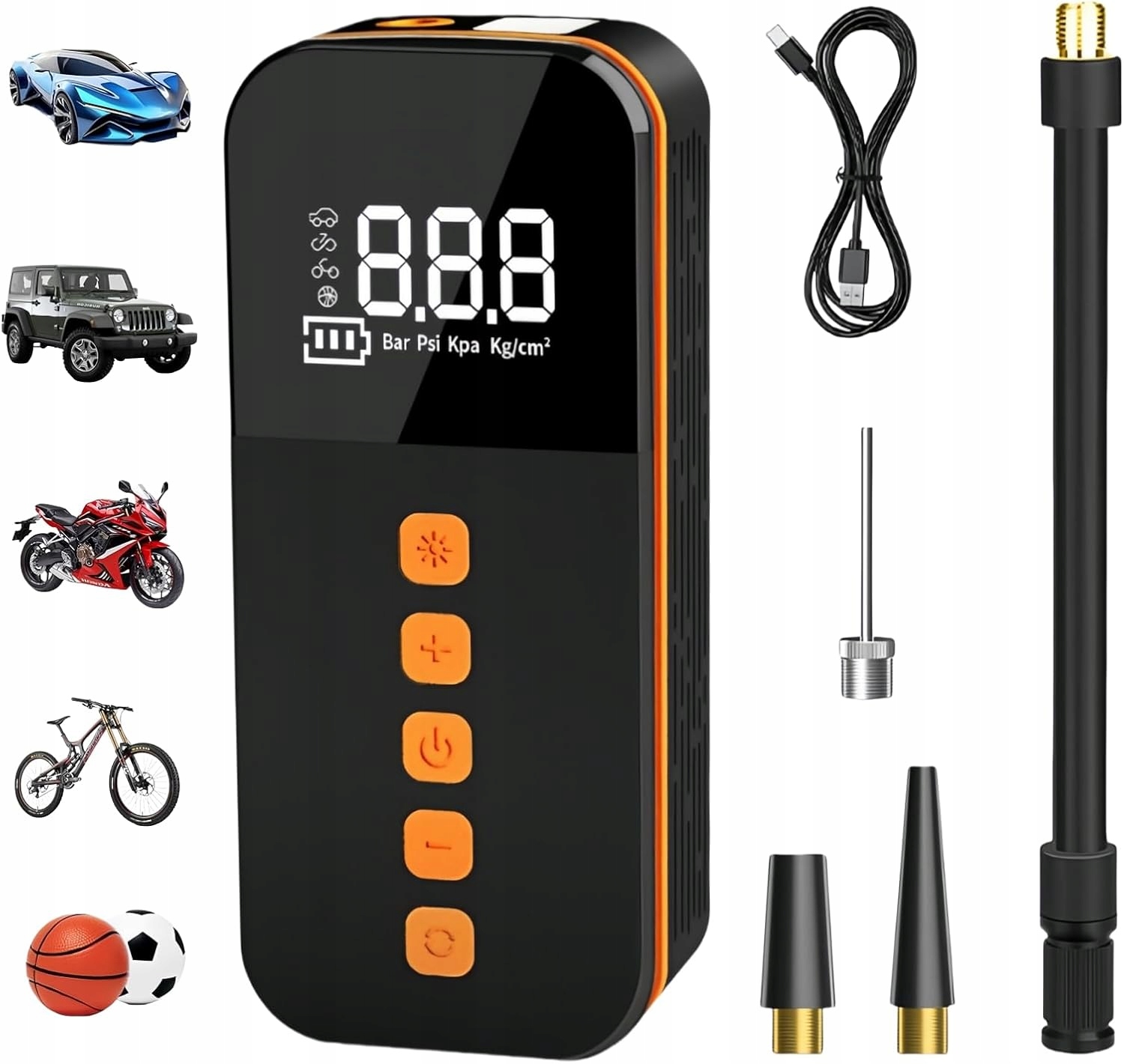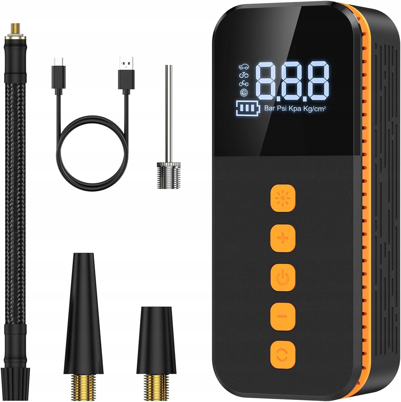 Насос оснащен выходным портом USB, который обеспечивает стабильный источник питания и может использоваться в качестве мощности для аварийной зарядки.