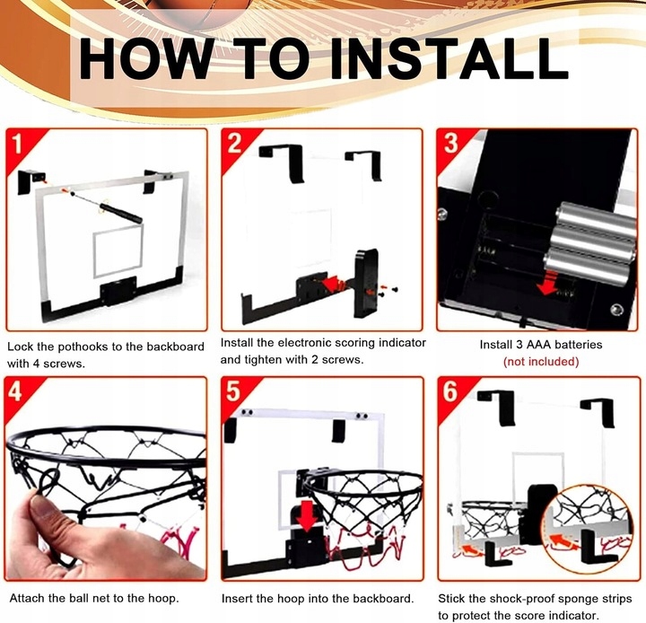 баскетбол в помещении поставляется с четкими инструкциями и всеми необходимыми инструментами. Повесьте его на стене или дверь своего офиса или дома, чтобы играть некоторое время и расслабиться. Легко отключить и экономит пространство для удобного хранения. Кроме того, он может быть установлен на верфи или на заборе