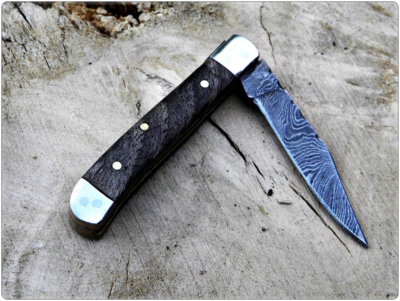 МИНИ / ДАМАССКИЙ СТАЛЬНОЙ СКЛАДНОЙ НОЖ DAMAST