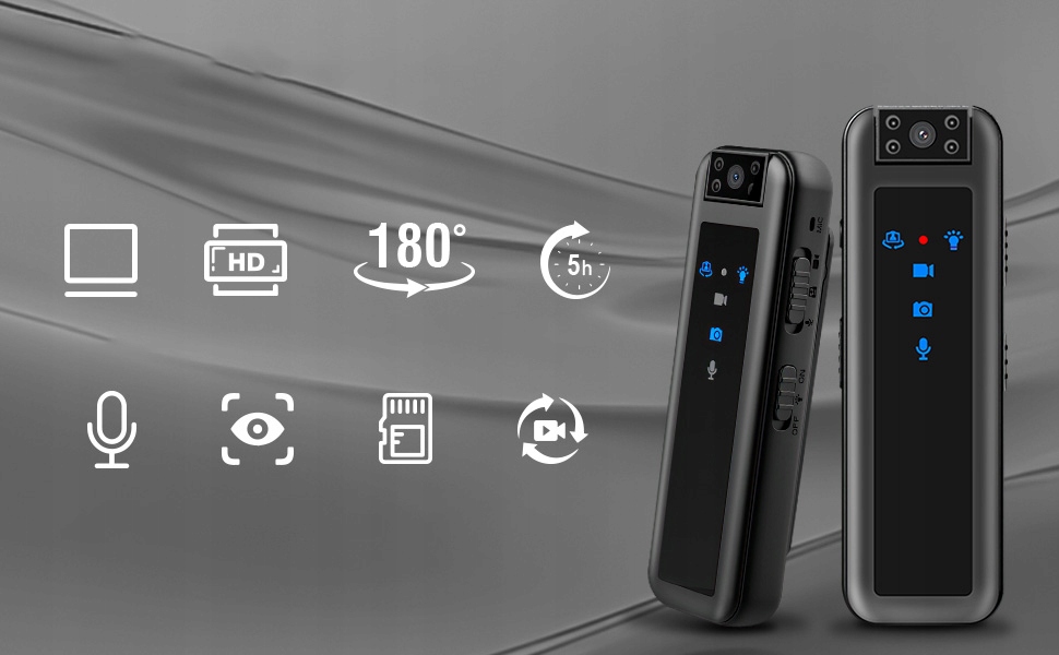 Оснащено сильной литиевой батареей 600 мАч, которая поддерживает до 5 часов видеозаписи, время зарядки около 4 часов, заряжается во время записи; Цифровая камера на теле имеет ночной ночной свет, видимый в условиях низкого освещения.