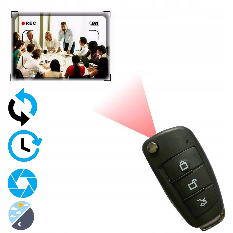 Идеальный камуфляж для мини -шпионской веб -камеры в виде кольца автомобиля. Необычно, что никто не ожидает, Обычное кольцо клавиш может выполнять такие функции. Теперь у вас есть возможность делать дискретные записи и легко контролировать. Все, что вам нужно для секретного наблюдения, доступно у вас под рукой.