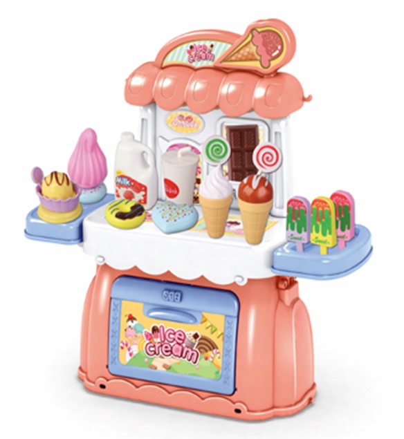 Набор включает в себя реалистичные аксессуары , такие как разнообразные ароматы мороженого, красочные аксессуары и другие элементы, которые помогают детям играть роль ледяки.