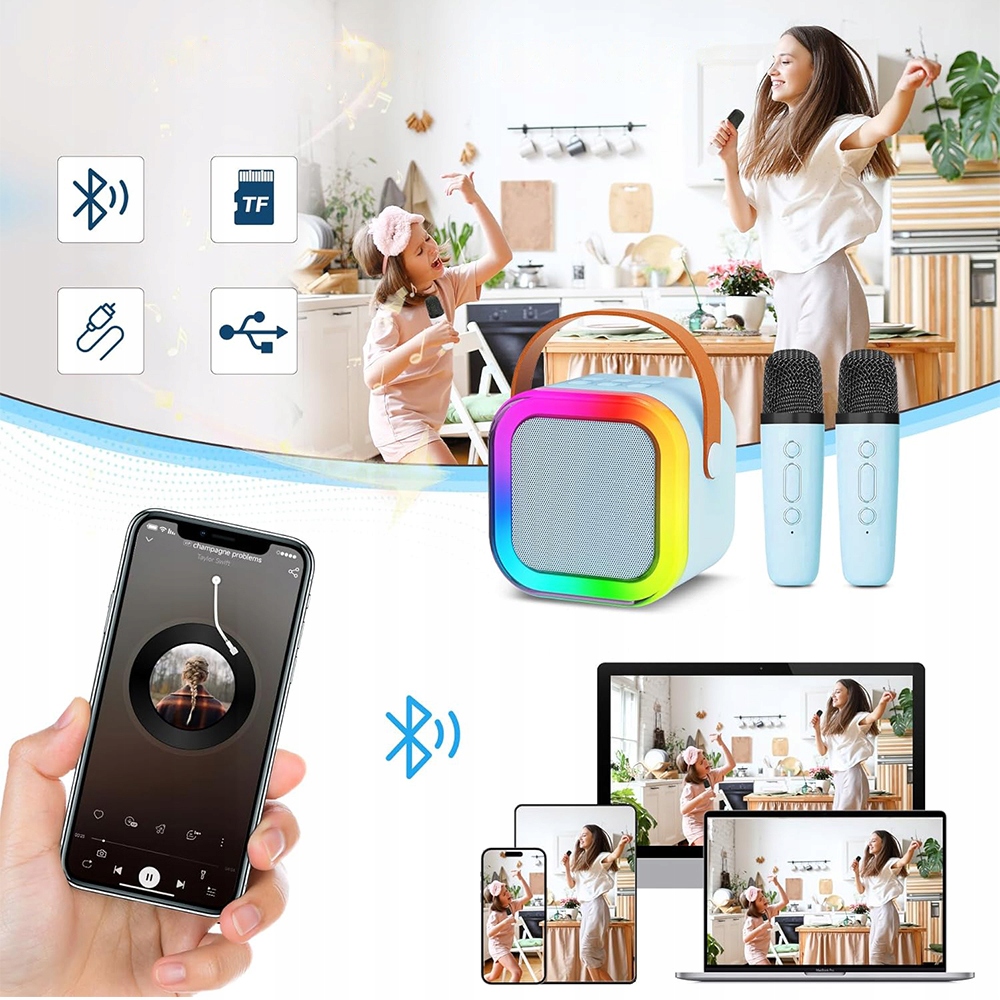 🏡 миниатюрная караоке -машина портативный динамик Bluetooth с 2 беспроводными микрофонами стерео звуками ›