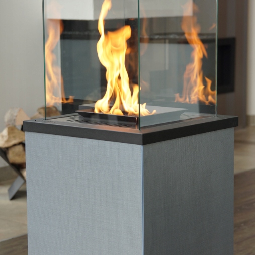 Патио Мини питается жидким газом из цилиндра, который скрыт в корпусе. Пламя заключается в стеклянной камере, которая покрывает нас от прямого контакта с огнем. Это позволяет вам восхищаться игрой пламени под полным контролем. Устройство использует закаленное стекло толщиной 4 мм. Нижняя часть корпуса устройства изготовлена из стали, отделанной спеченным кварцем. Стопки не только выглядят оригинальными, но и очень устойчивы и твердые, что дает им большее сопротивление механическим повреждениям. Верхняя конструкция обогревателя гарантирует защиту