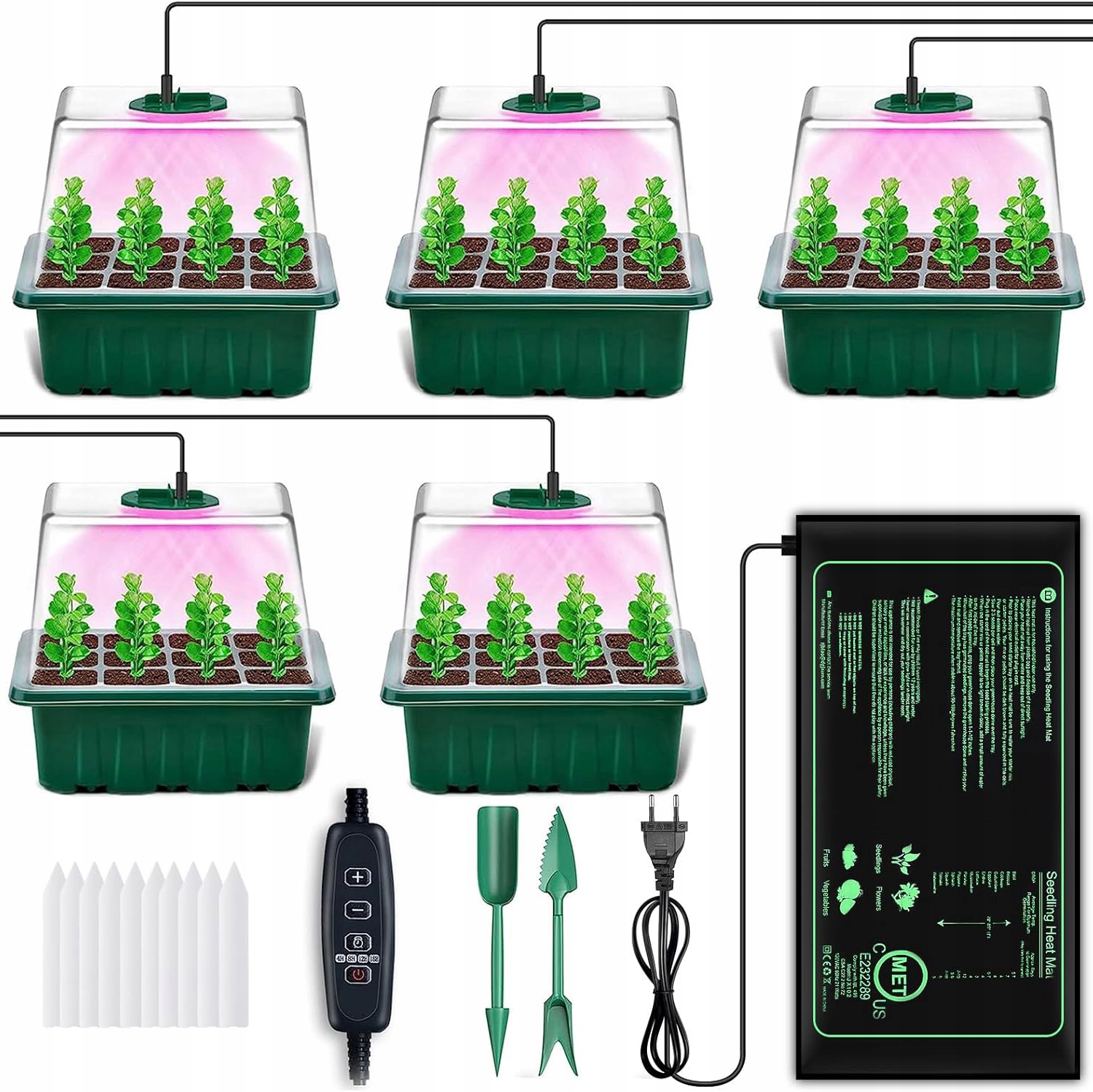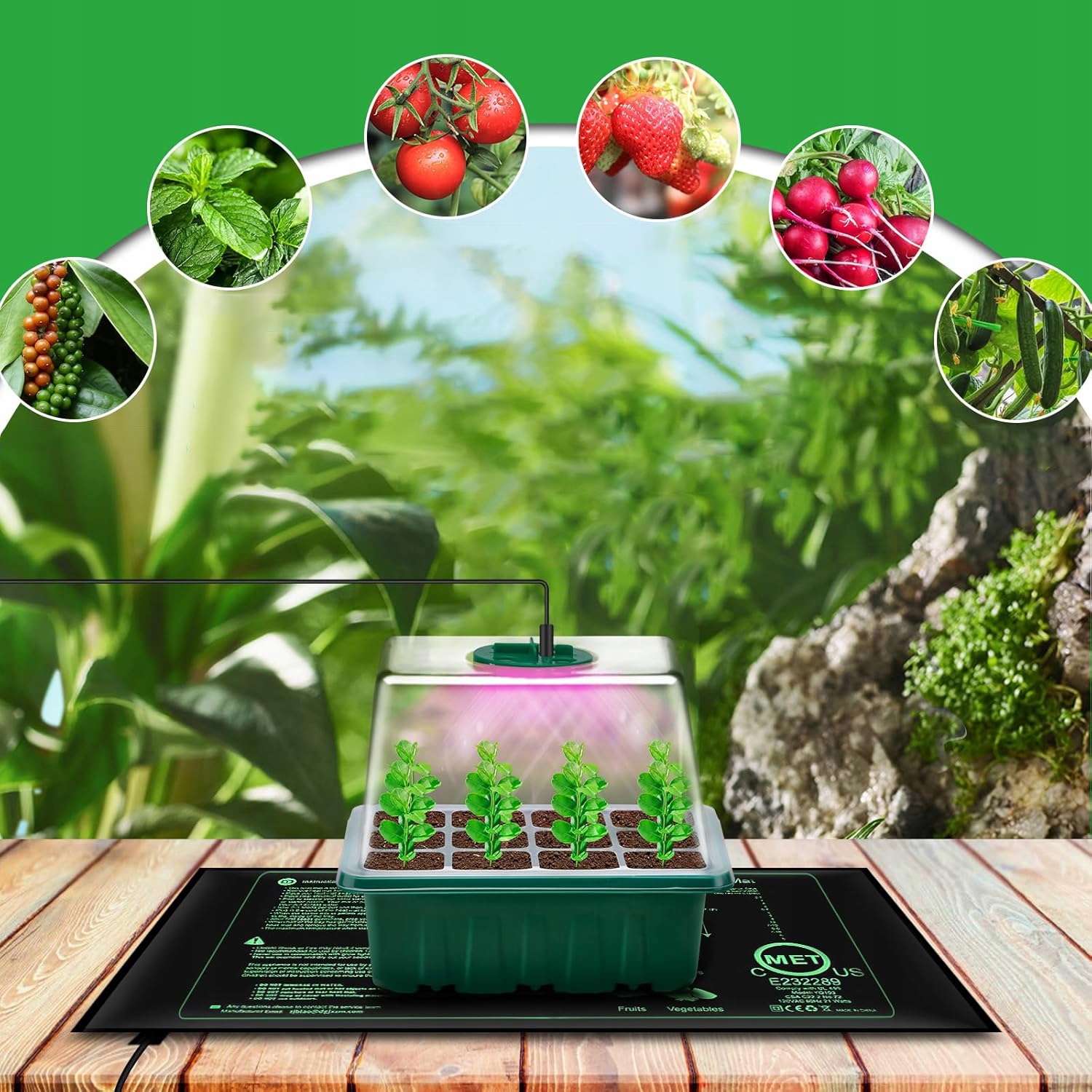 Мини -теплица с пропагатором овощной лампы с термостатическим ковриком