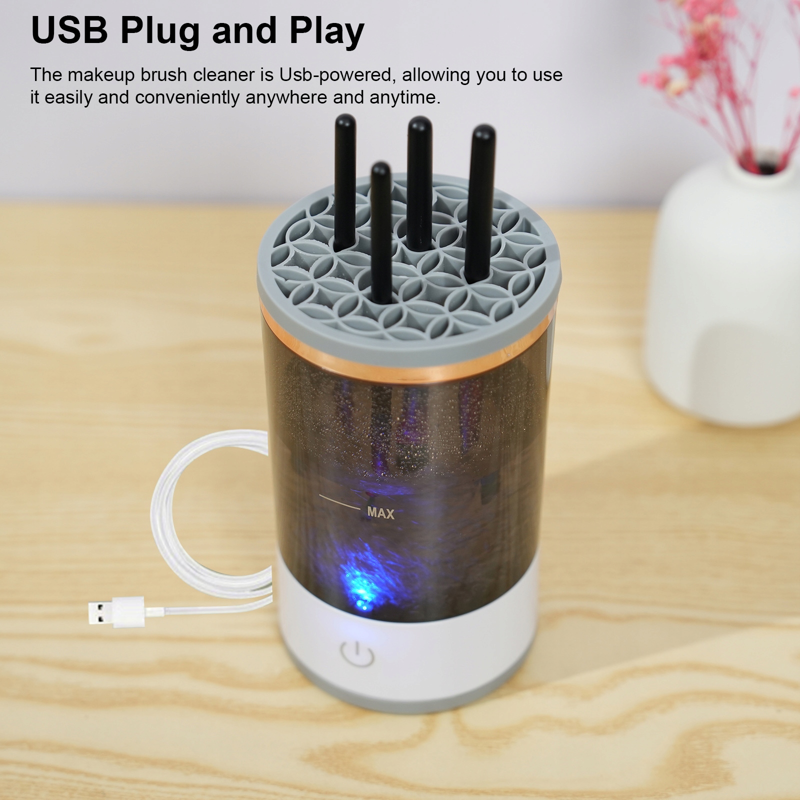 usb -заглушка и игра: Make -up щетка для очистки щетки питается USB, так что вы можете легко и удобно использовать его в любом месте и времени. С помощью простого USB -кабеля вы можете подключить его к любому источнику питания, просто подключите и играйте.