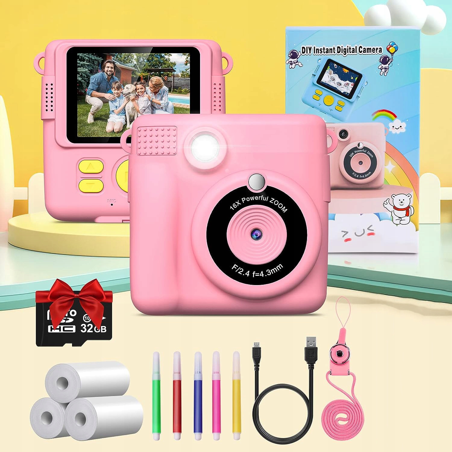 🎁 беззаботные родители - подарок с камерой для детей оснащен полными аксессуарами: 1 X мгновенная камера для детей; 1 X USB -зарядка кабеля; 1 x карта 32 г; 3 x тепловая бумага; 1 x Ключевой повод; 6 x ручек; 1 x кабель к подвеске; 1 x Руководство пользователя (может быть недоступно на лаке).