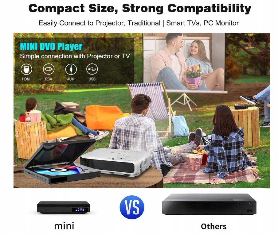 поддерживает USB 2.0: подключить USB, подождать 3-5 секунд, индикатор будет освещаться и начнет воспроизводить цифровые файлы непосредственно через USB. Компактный DVD -плеер легко читает видео и аудио форматы из USB -памяти, смотрит ваши любимые фильмы и слушает музыку. Поддерживает AVI/MPG/MPG4/VOB/MP3/WMA. Этот DVD-плеер, поддерживающий все регионы, может воспроизводить большинство дисков, форматы DVD/DVD+RW/DVD-R. Благодаря расширенной функции воспроизведения из памяти, этот компактный DVD -плеер находит именно там, где он был прерван, и продолжает воспроизведение. TV DVD -плеель оптимизирован для шума во время работы, что делает его тише во время игры. Функция повторения клипа A-B гарантирует, что вы не пропустите ни одного клипа, поэтому он особенно полезен для изучения языков
