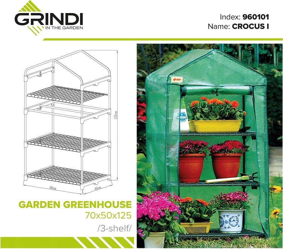 мини -садовая теплица для 3 полков - зеленый - Crocus I - 70x50x125 h1>