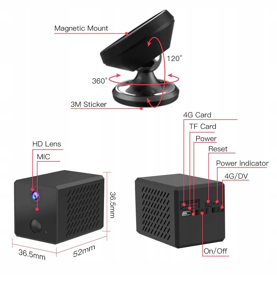 √ мини-камера Full HD 1080p. √ Построен -в 2600 мАч батареи в течение длительного ожидания. √ Micro Sim 4G Card. Питание сетевого питания и DV -рекордер √ PIR обнаружение человеческого движения и обнаружение тревоги от отсутствия √ Двухлетняя аудиосвязанность в режиме реального времени и инфракрасное ночное видение, невидимые ИК -огни. √ 8-256GB TF и облачное хранилище