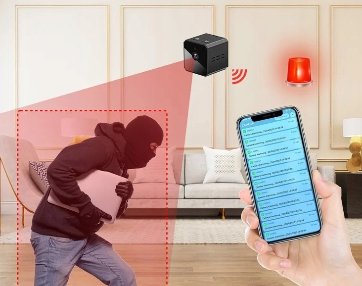 Миниатюрная камера, используемая в устройстве, идеально подходит для скрытия в «Офисных комнатах, квартире, складе или любое другое использование . Камера оснащена инфракрасными диодами, которые позволяют вам предварительно просмотреть изображение даже полностью затемненную комнату. Благодаря используемой батареи 500 мАч, которая позволяет ему работать до 4 часов или возможности работы под фиксированным источником питания/мощности