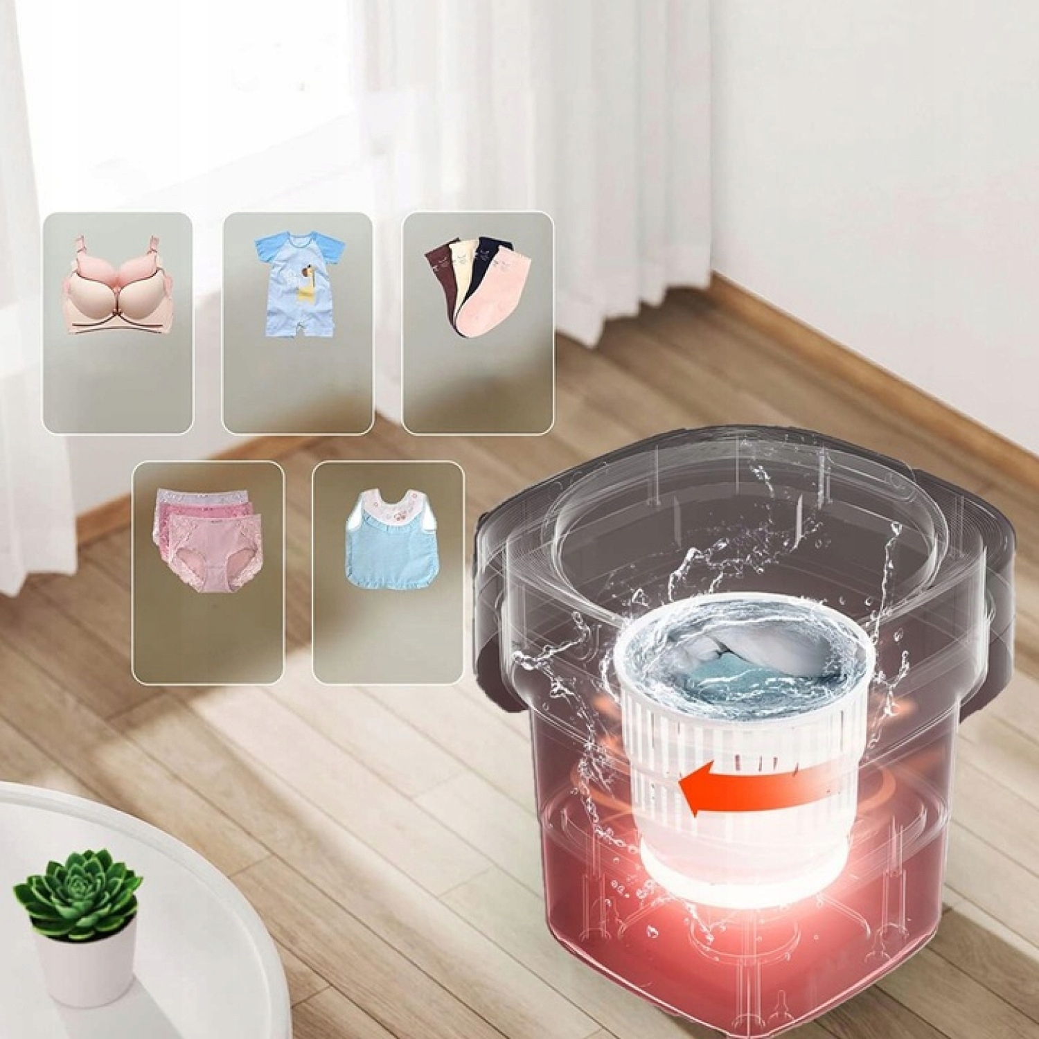 - Благодаря этой складываемой, портативной и компактной стиральной машине вам больше не нужно беспокоиться о стирке во время путешествия. Это идеальное решение, чтобы иметь чистую и свежую одежду в путешествии.