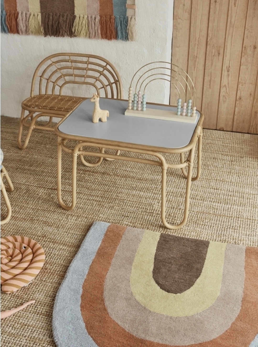 Rainbow Table - это таблица, изготовленная как часть серии. Стол может быть использован в детской комнате, например, чай -рецепт с куклами. Ребенок будет в восторге от небольшого стола, относящегося к мебели, которую есть у взрослых. Таблица может быть благоприятно связана с стулом или скамейкой из той же серии. Если таблица должна использоваться для рисования и покраски, мы рекомендуем нанести на него скатерть или использовать в качестве основы одной из популярных прокладок от Oyoy Living Design. Сделано из 100% ротанга. MDF Top Top. Качество: 100% размер ротана: высота 48 x длина 67 x Ширина 44,5 см