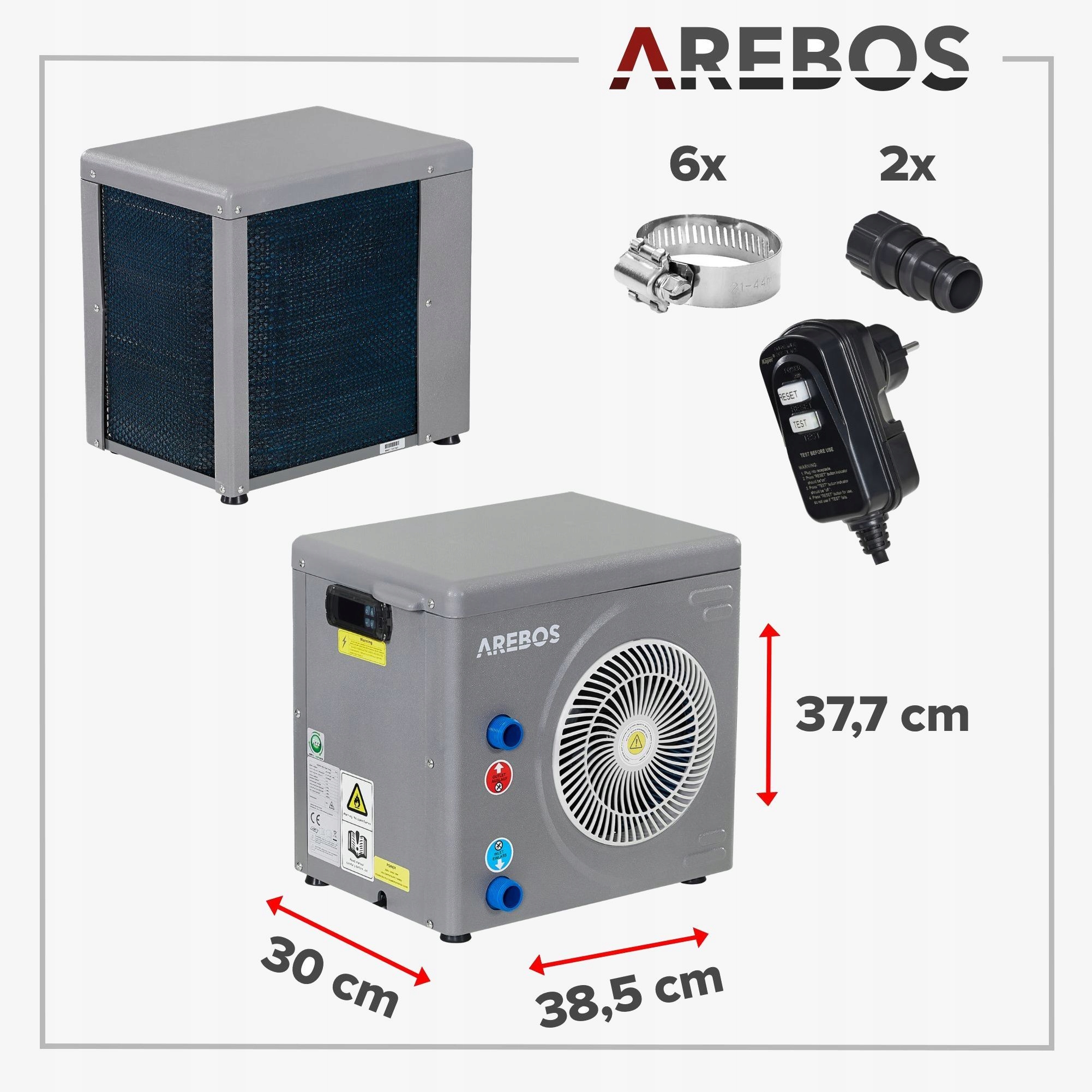 Тепловой насос Arebos mini генерирует тепло от воздуха окружающей среды и использует ее для нагрева воды в бассейне. Это энергетический и экономический метод по сравнению с традиционными системами отопления. Подключите тепловой насос с шлангами Arebos Bool, продаваемыми отдельно, и системой песчаных фильтров, чтобы насладиться чистым и приятным весельем в бассейне.