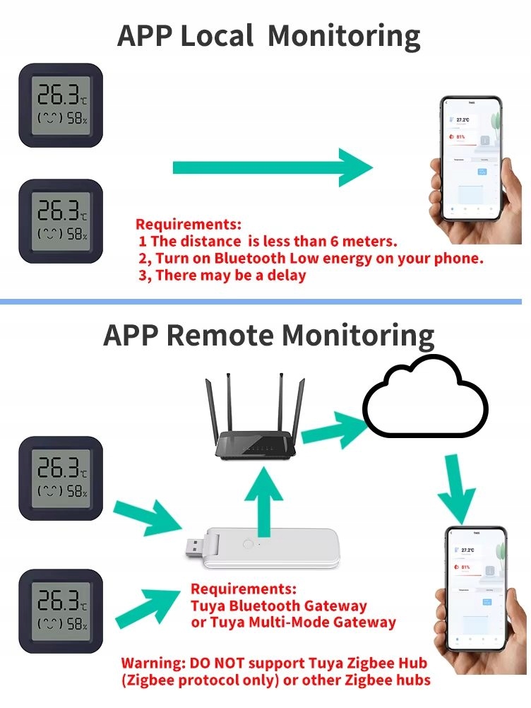 После подключения к цели Zigbee Tuya вы можете создать сценарии в приложении с другими интеллектуальными устройствами на основе датчика Параметры - температура, температура и влажность. b>: Когда комната сухая, увлажнитель будет автоматически включен. К определенному значению, кондиционер будет включен автоматически. автоматически включается голосовой контроль и уведомления
