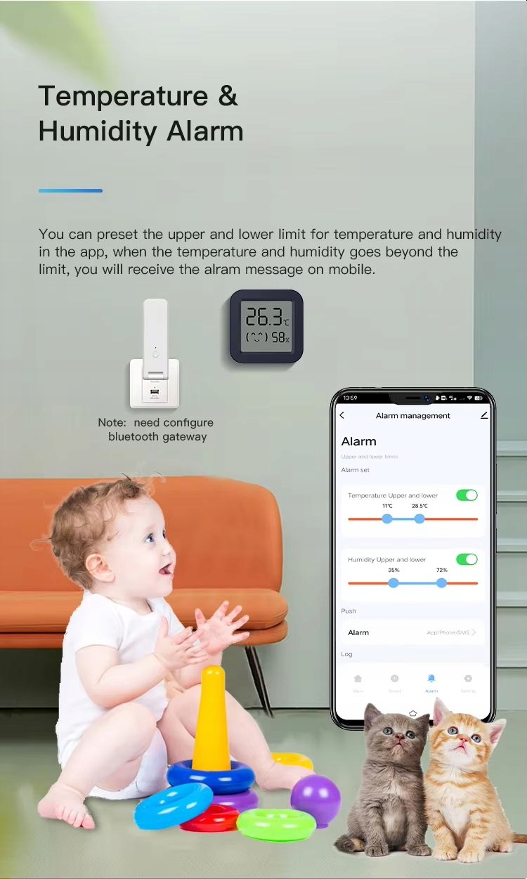 Датчик температуры и влажности может быть подвешен и помещать в любом месте, не занимая пространство b>, на прикроватных столах, столах, офисах, на стенах или за дверью.