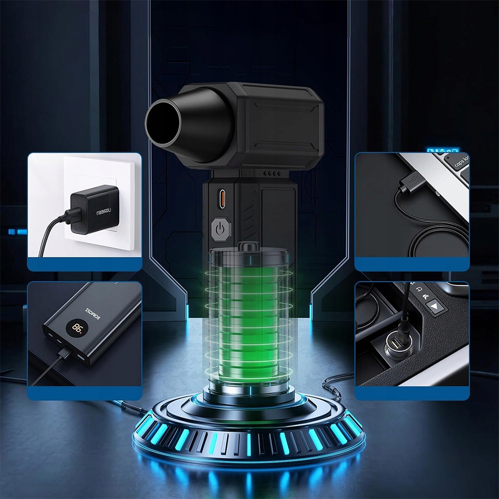 🔹 prędkoś może osiągnąą 130 00 obr./min, silna siłatru Czyszczenie, Oszczędzając Czas I Energię, Którą Można regulować, przesuwając przycisk w górę i W Dół, Aby Zmienić Speed Wind. - Благодаря емкостью батареи 6000 мАч может работать непрерывно до четырех часов, максимальная скорость ветра может использоваться непрерывно в течение более 15 минут, а каждая зарядка длится 2-2,5 часа. Благодаря защите от перегрузки, она может безопасно и эффективно защитить батарею и продлить свою жизнь.