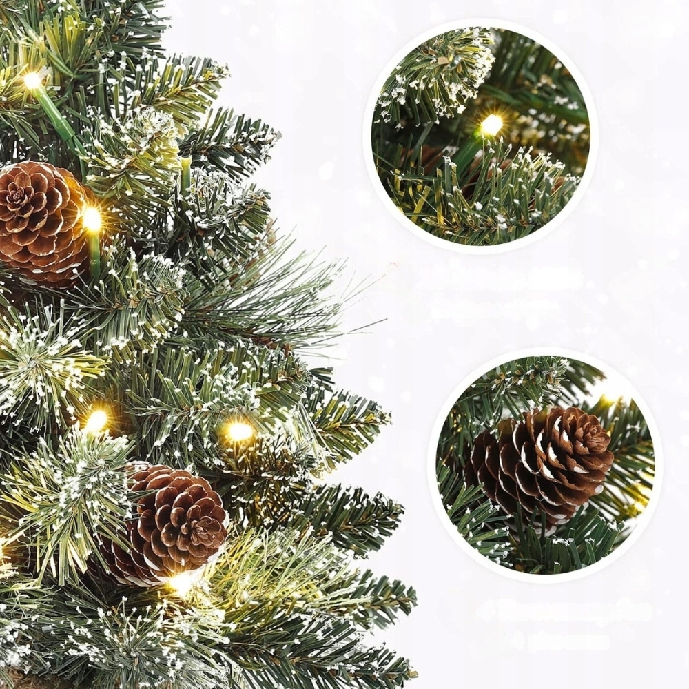 Светодиодное освещение имеет функцию таймера. После выбора этой функции освещение автоматически отключается после 6 часов постоянного освещения и снова включается через 18 часов. Он меняется автоматически. В дополнение к конусам и светодиодным огням, содержащимся в упаковке, вы также можете украсить дерево другими типичными рождественскими элементами, такими как снежинки, звезды, рождественские безделушки и колокольчики