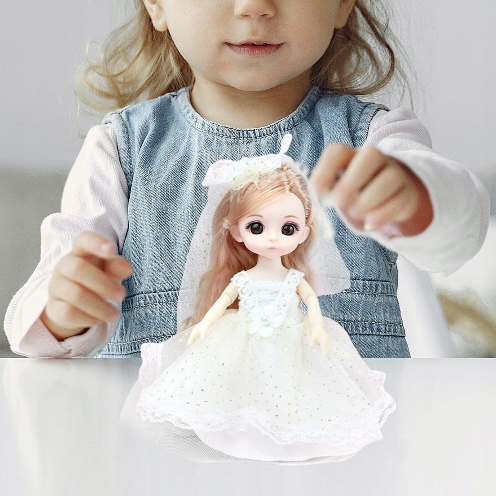 Кукла BJD 15 см, 6 дюймов, 13 соединенных аксессуаров, бежевое свадебное платье для девочек с длинными волосами