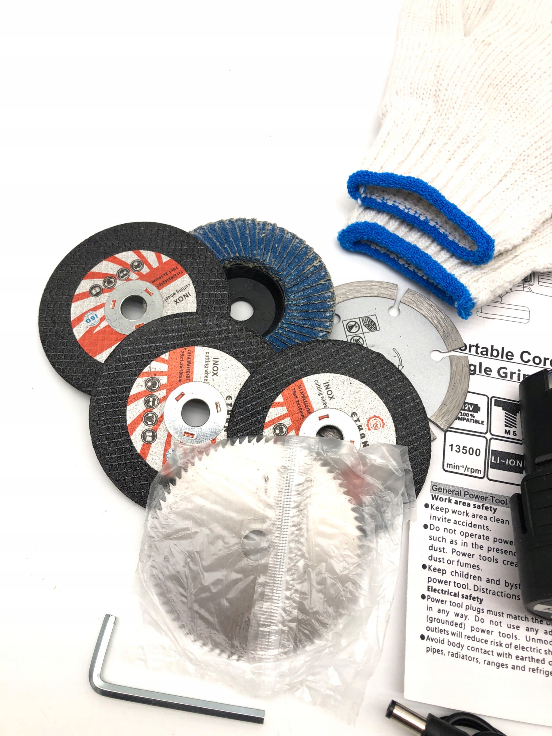 <р> Эта шлифовальная машина идеально подходит для резки, шлифования и очистки. Она справится с любой поставленной перед ней задачей. Высокая скорость вращения и мощный медный двигатель обеспечивают быстрые и эффективные результаты. <р> В комплект входят 6 отрезных дисков, поэтому вы можете сразу приступить к работе. Компактные размеры и аккумулятор 2×1500 мАч позволяют работать где угодно, в течение 24 часов. <р> Выполните любой проект с легкостью и экономией времени с помощью этой универсальной и мощной мини-угловой шлифовальной машины. Полный контроль и комфорт работы – то, что вы заслуживаете!Параметры продукта