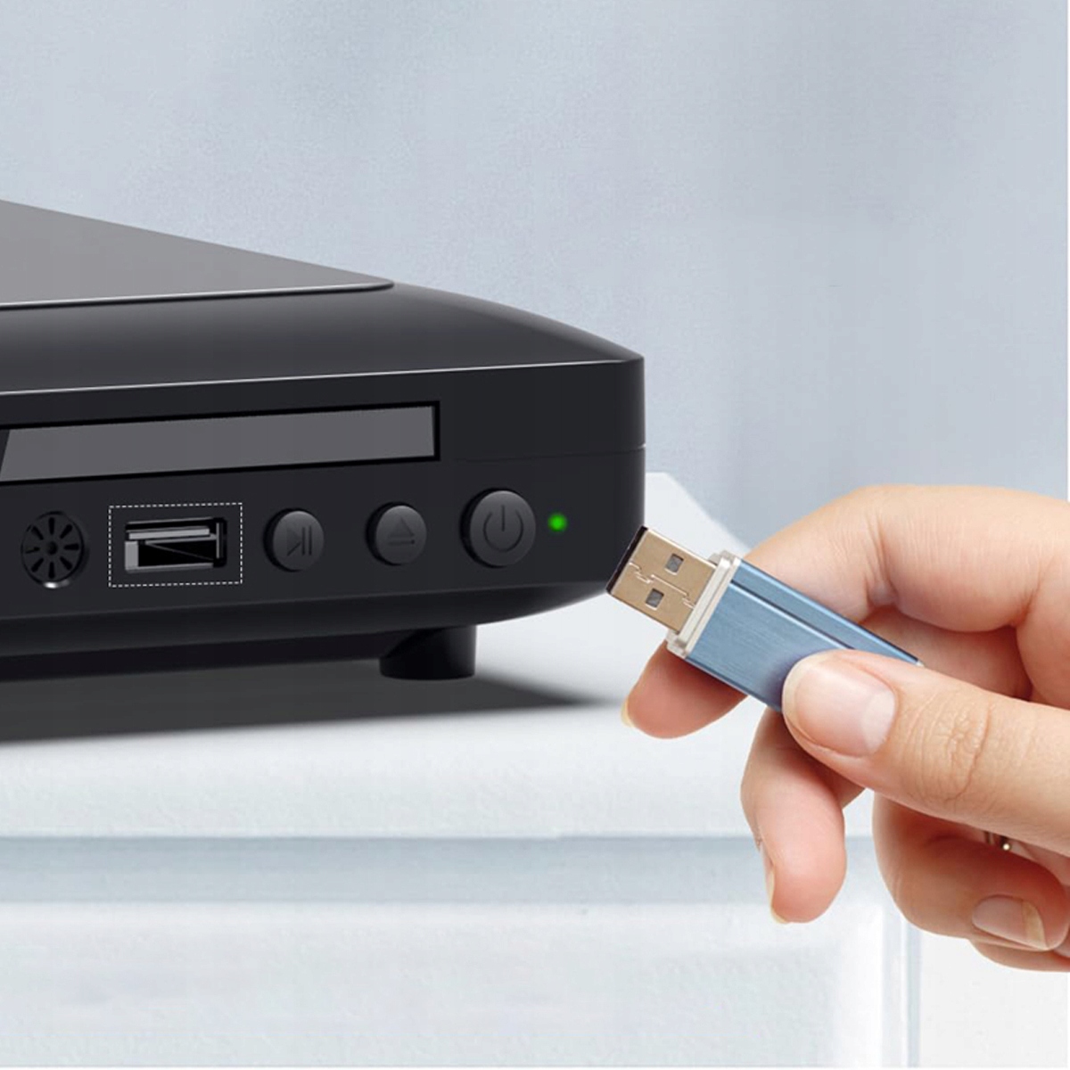 - Встроенный USB-порт позволяет воспроизводить цифровые файлы напрямую через USB, легко читать видео, фотографии и музыку с USB-накопителя. Но он поддерживает только USB-накопитель емкостью до 16 ГБ и воспроизводит видеофайлы с разрешением 720*480/576 (AVI/MPG/MPEG4/VOB).