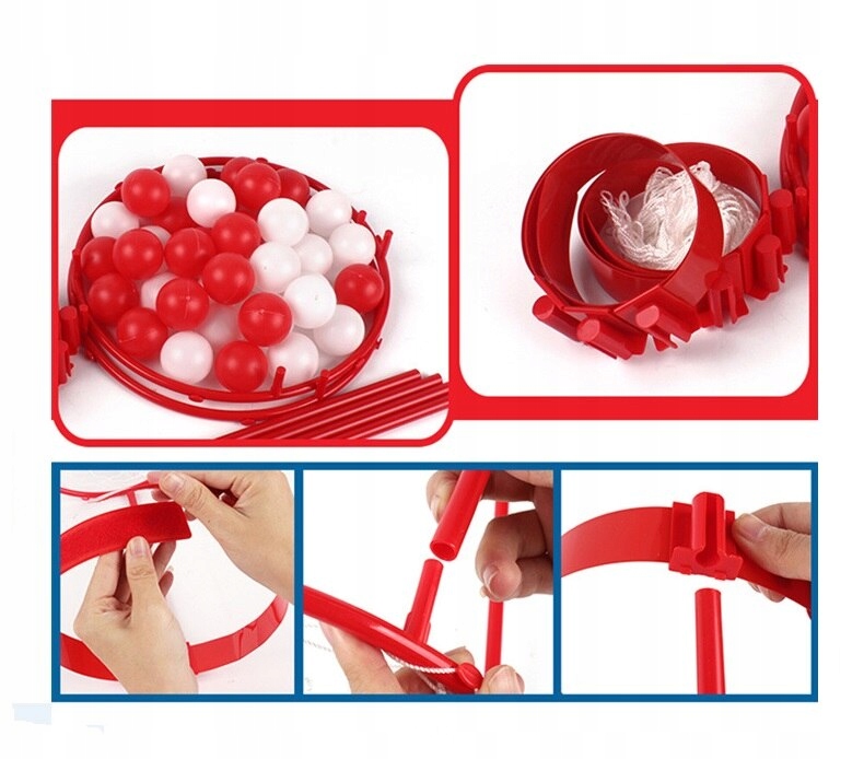 - ★ Веселая игра в бассет: в комплект входит красная регулируемая пластиковая повязка на голову и 20 пластиковых мячей (10 красных и 10 белых).