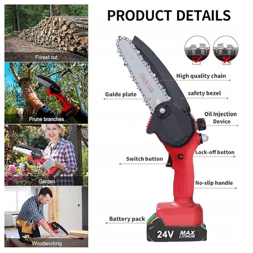 ⭐ Мини-бензопила 24 В — легкая, эффективная, с аксессуарами ⭐