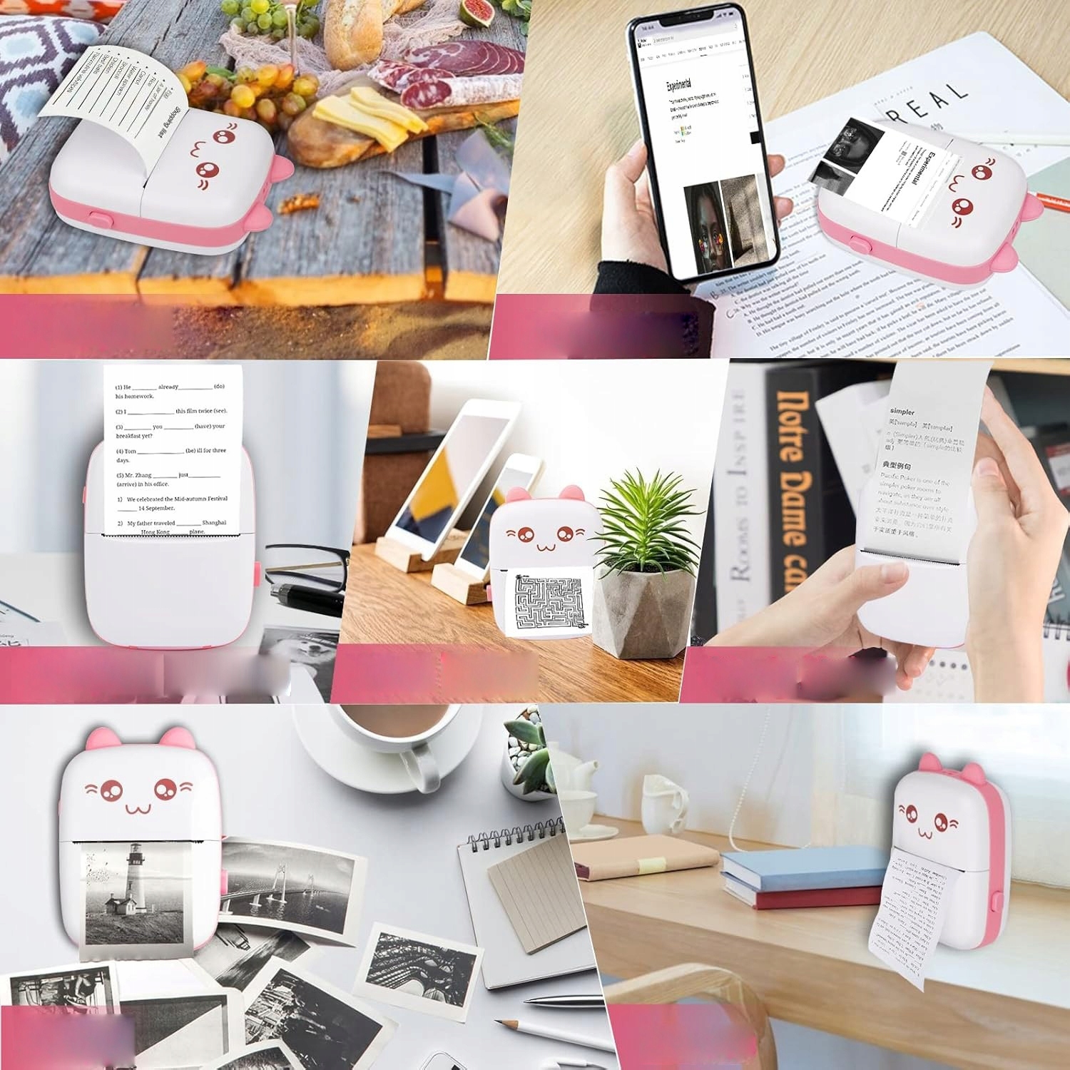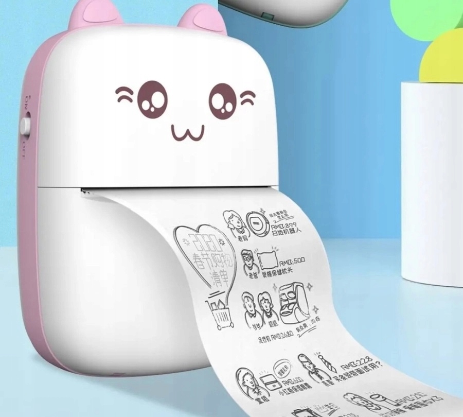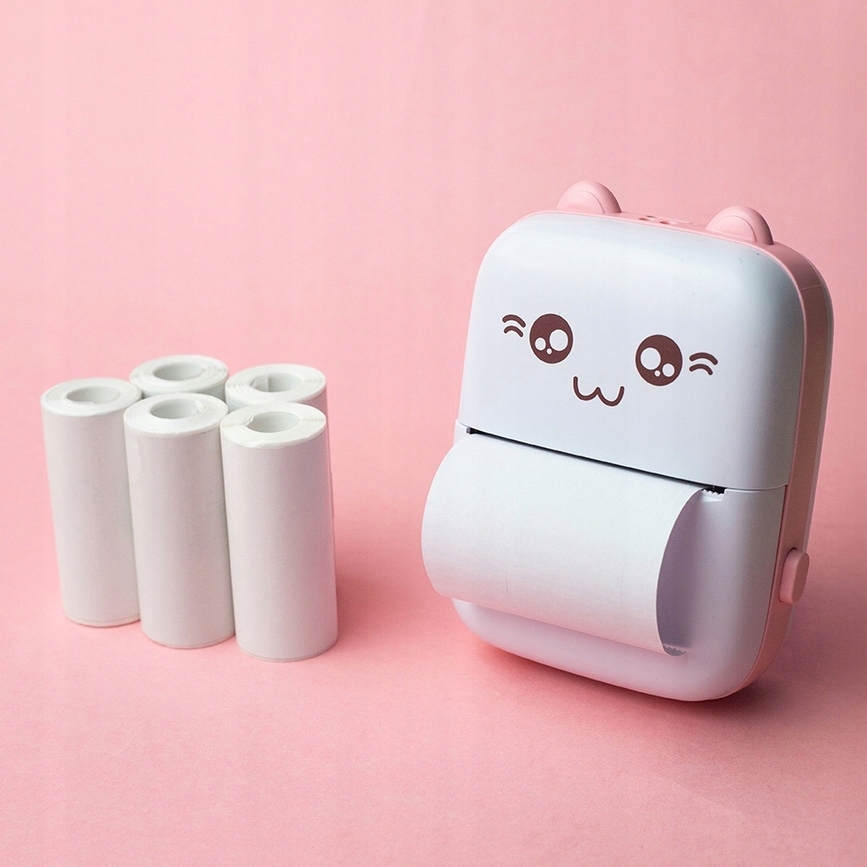 Мини-мгновенный термопринтер | для детей | Pink Kitty + 6 рулонов