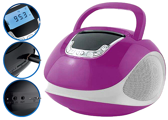 MINI BOOMBOX BM110 Purple Bluetooth USB Radio AUX