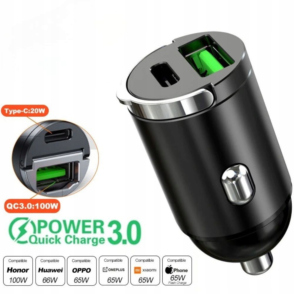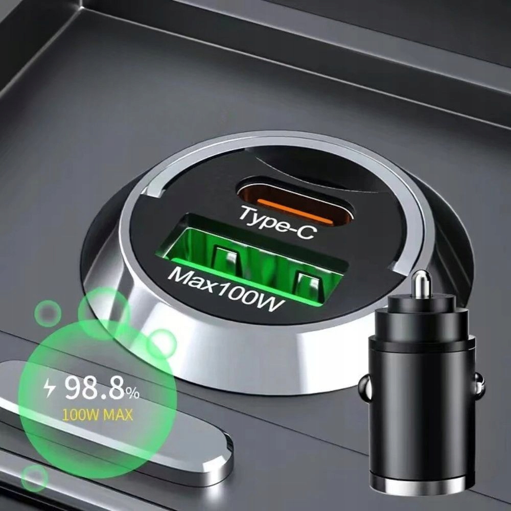 🚗 быстрое 100 Вт автомобильное зарядное устройство с USB-C Power Delivery (PD) и USB-A Quick Charge (QC)-это профессиональное решение для водителей, которые ожидают самой высокой эффективности и надежности. благодаря максимальной мощности 100 Вт зарядное устройство позволяет Мгновенную зарядку ноутбуки, смартфоны, планшеты, банк питания, а также другие устройства, работающие USB.
