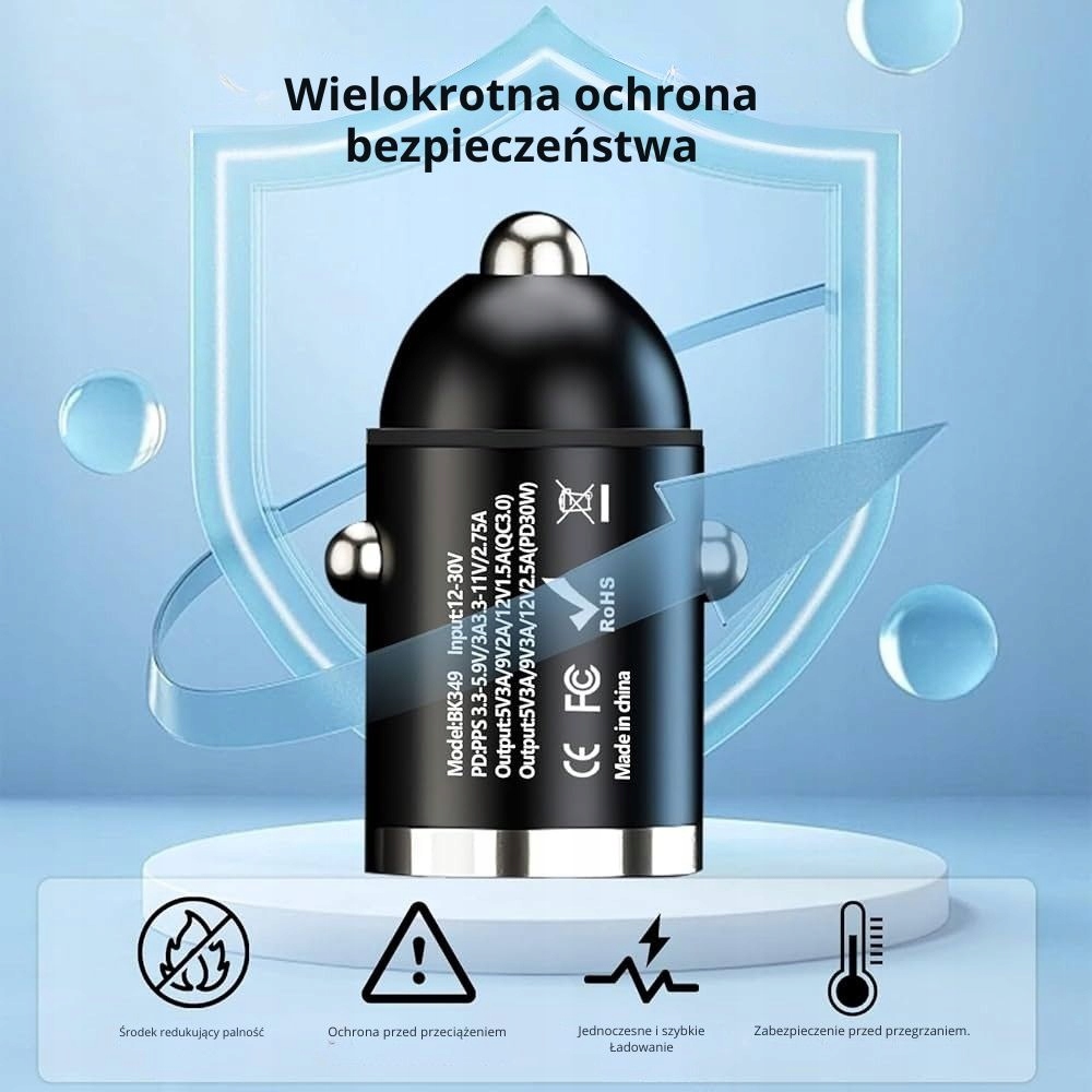 Просматривая «Mini Car Charger QC 3.0 PD 12-24V 100W | 200 Вт быстрая зарядка», вы можете быть уверены, что данный товар из каталога «[rubrica_name]» будет доставлен из Польши и проверен на целостность. В цене товара, указанной на сайте, учтена доставка из Польши. Внимание!!! Товары для Евросоюза, согласно законодательству стран Евросоюза, могут отличаться упаковкой или наполнением.