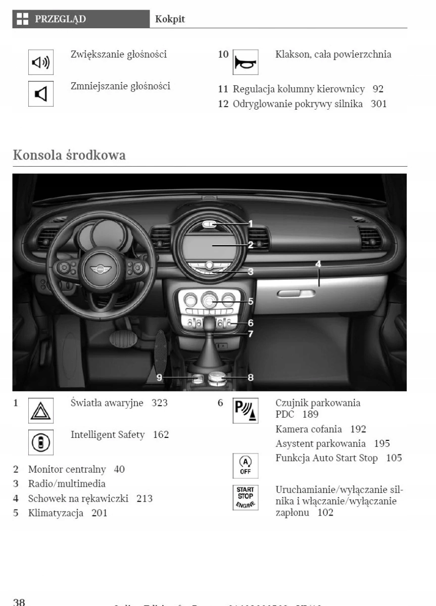 Руководство пользователя Mini содержит все версии оборудования и полезную информацию о том, как эффективно и безопасно использовать автомобиль, например. - индикаторы, контрольные лампы открытия и закрытия - освещение и обзорность, сиденья, отсеки для хранения вещей, отопление, вентиляция, кондиционирование - советы по вождению, эксплуатации, обслуживанию автомобиля - уровни жидкостей, проверка и доливка, аварийные операции, замена колес, предохранители, замена лампочек - технические данные... и многое другое, что дает путешественникам ощущение безопасности и комфорта. Польское законодательство обязывает продавца приложить к автомобилю руководство по эксплуатации на польском языке. Руководство пользователя автомобиля новое, на польском языке.