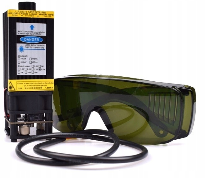 Лазер с ЧПУ максимальной мощностью 15 Вт и длиной волны 450 нм.