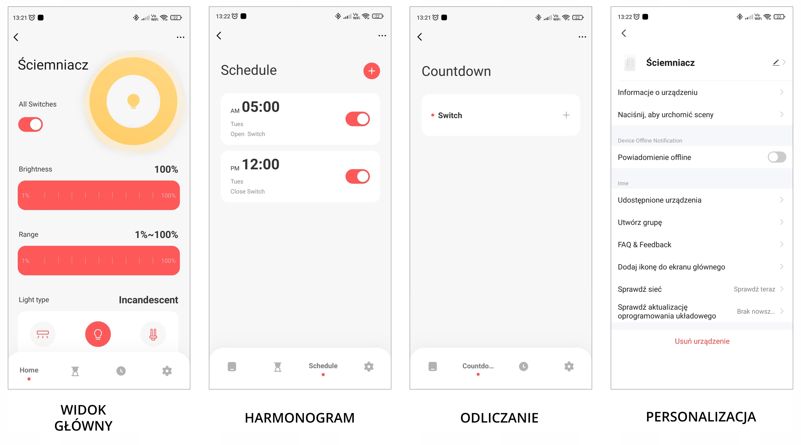 - Расписание – установите часы, в которые свет должен включаться или выключаться