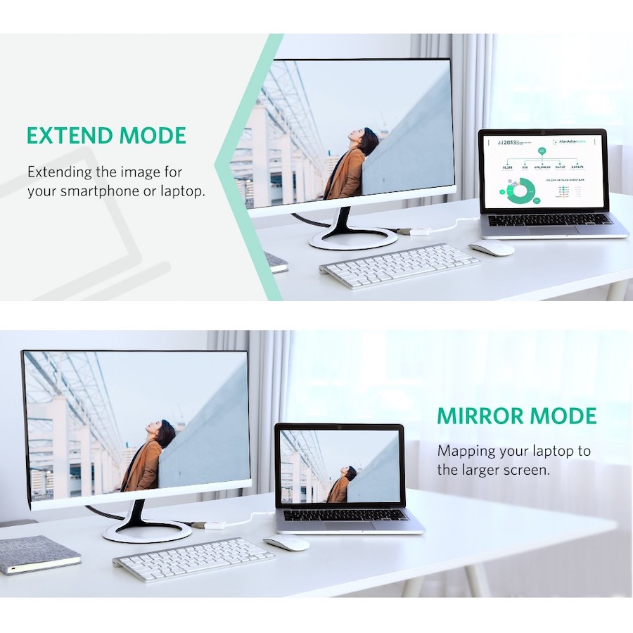 Подключите устройство к внешнему экрану без каких -либо проблем, если вам нужно отобразить изображение на большей поверхности (режим зеркала).