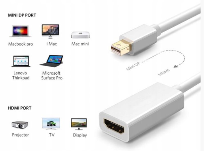 - Позволяет подключать устройства с помощью мини -гнезда дисплея к устройствам с гнездом HDMI