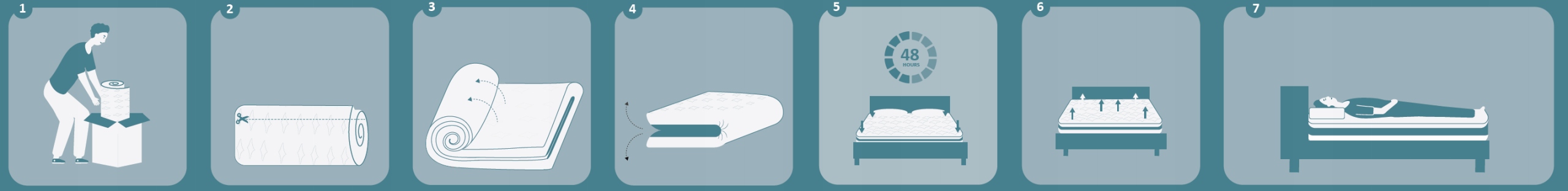 После получения товара снимите защитную пленку и поместите матрас в просторное место, например, на каркас кровати. Матрас поднимается в мгновение ока, и его можно использовать, как только он обретет правильную форму. Не рекомендуется хранить матрас в герметичной упаковке дольше 14 дней.