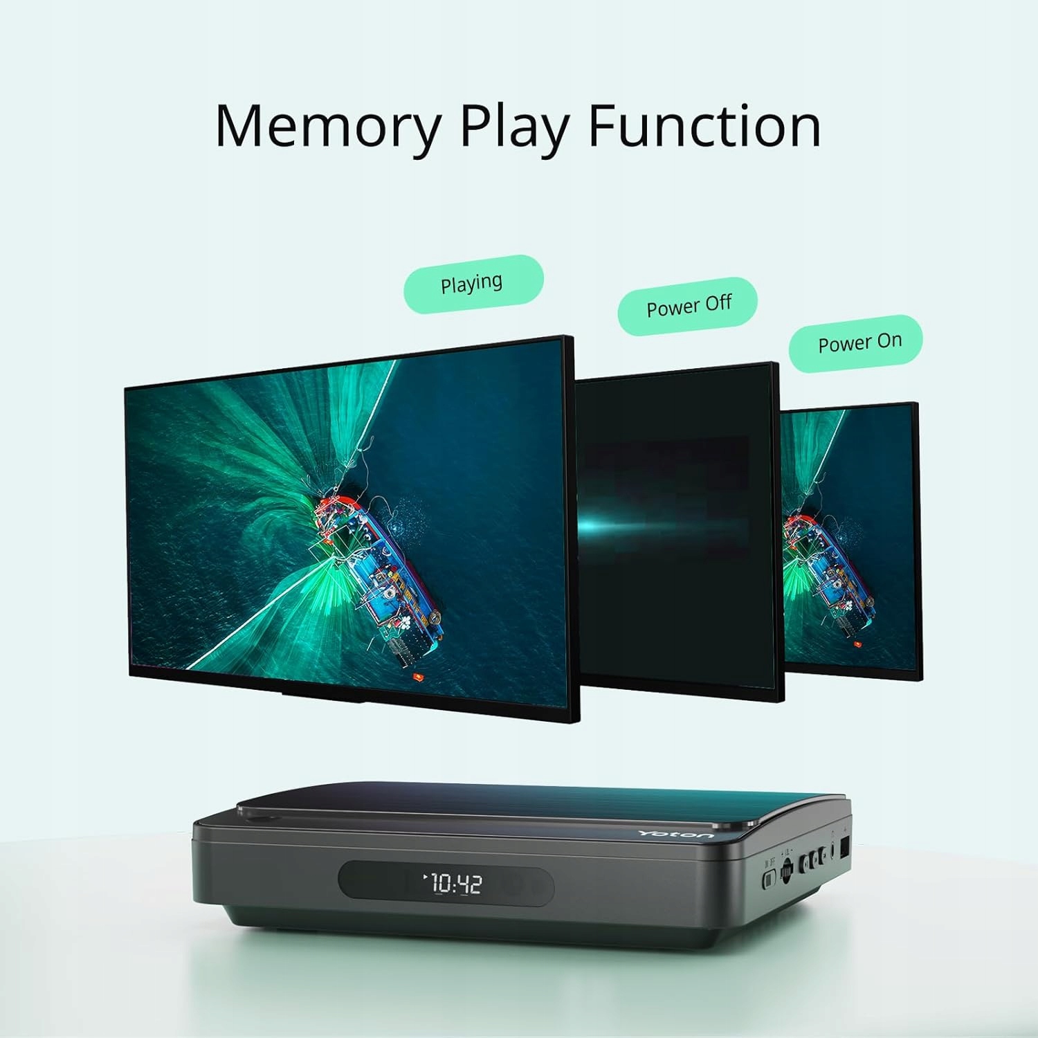yoton yd078 черный и выглядит просто, но элегантно. Устройство вписывается в любую комнату. Играйте все свои фильмы, используя этот DVD -плеер с HDMI!