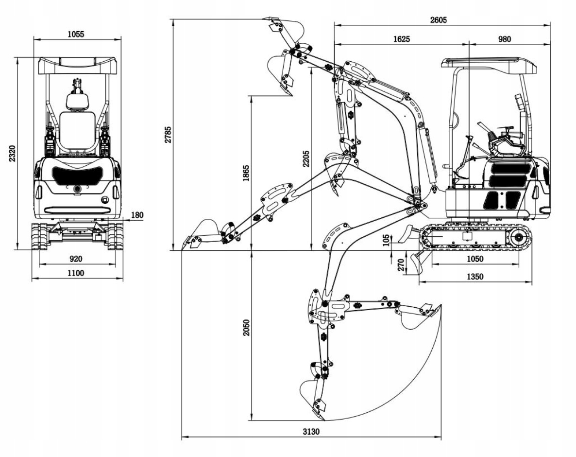 - ✔ Макс. Диапазон копания : 3130 мм