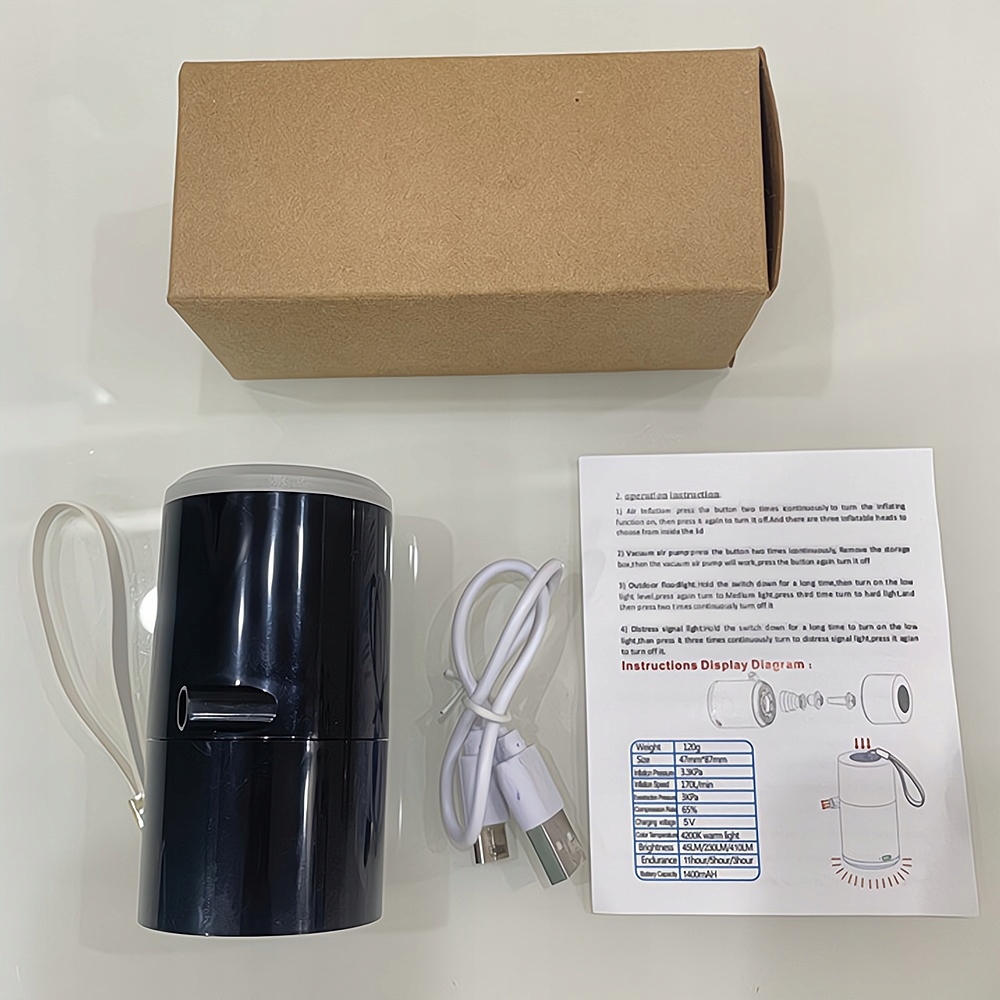 Портативный и легкий дизайн позволяет брать его с собой куда угодно, будь то приключения на природе, походы или повседневное использование, вы можете легко наслаждайтесь его удобством. Этот воздушный насос 3-в-1 — идеальный выбор для использования как на открытом воздухе, так и в помещении.
