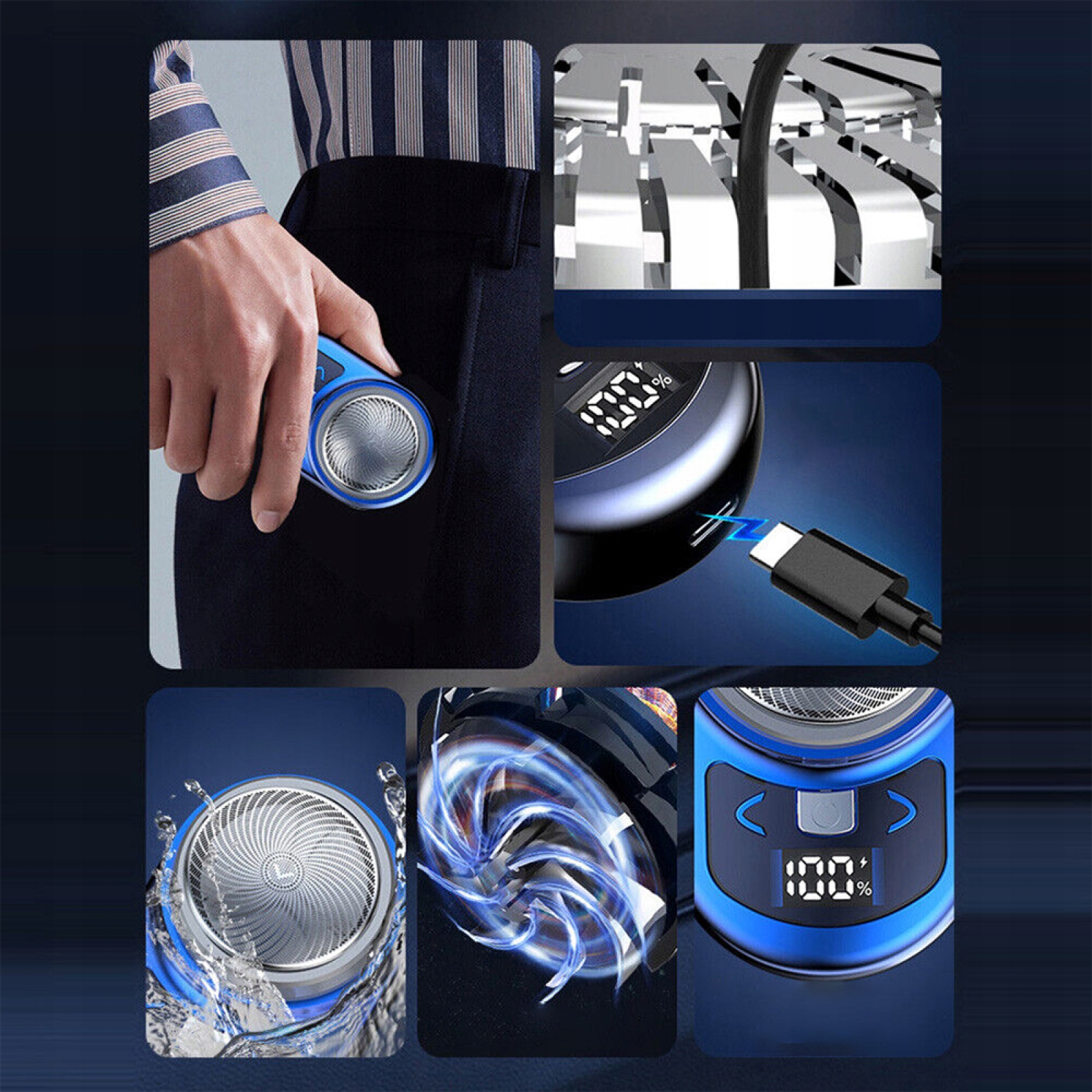 👍- Эта мини-электробритва оснащена острыми турбинными лезвиями из нержавеющей стали, предназначенными для удаления жестких волос на лице и обеспечения точного и чистого бритья.