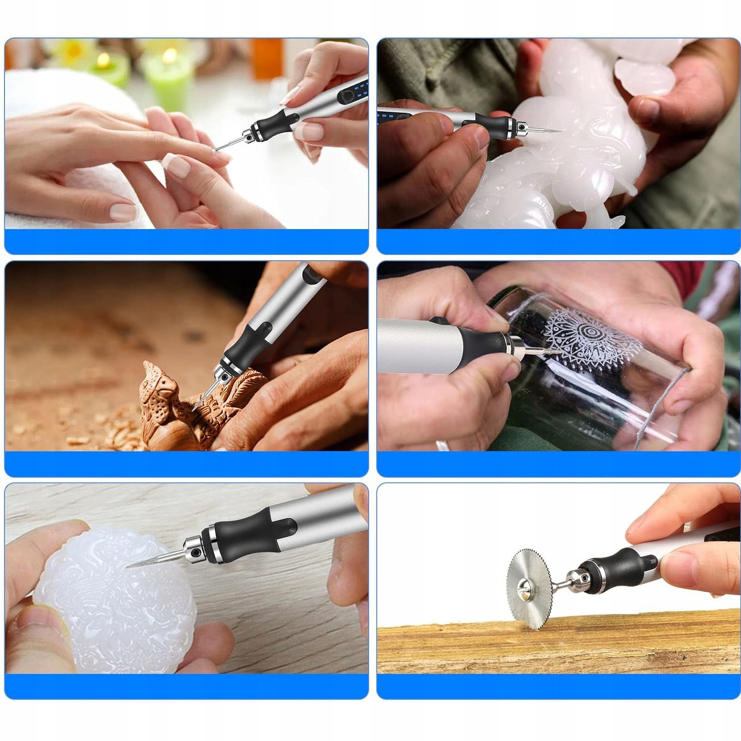 📦📦Многофункциональный набор для гравировки: Этот набор для ручной гравировки можно использовать как электрический гравировальный станок или небольшой вращающийся инструмент, который позволяет за считанные секунды персонализировать или украсить практически любую поверхность, например, металл, пластик, стекло, керамику, дерево, кожу, бриллианты, камни и многое другое.