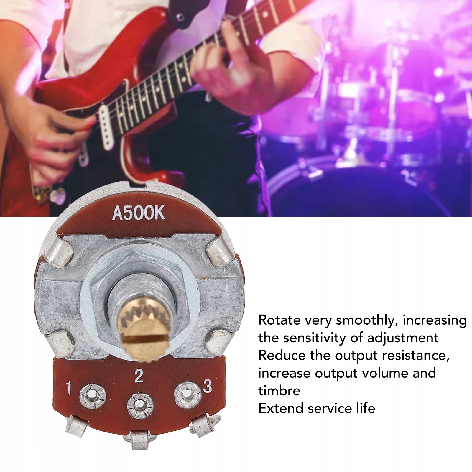 5. ПРОЧНЫЙ МЕТАЛЛ: мини-гитарный потенциометр 500K с использованием превосходного металлического материала, блестящий и прочный, обладающий хорошей термостойкостью, высокой механической прочностью, не подвержен старению.